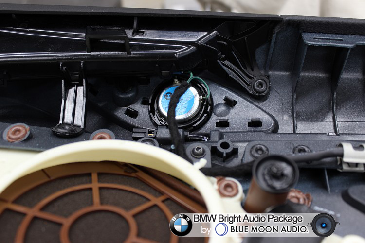 BMA-G30FS+Cは、ブルームーンオーディオから販売されているBMW用キットで、ツイーターとスコーカー、センタースピーカーの5点から構成され、ツイーター以外は専用設計のアルミ製バッフルが付属しています。