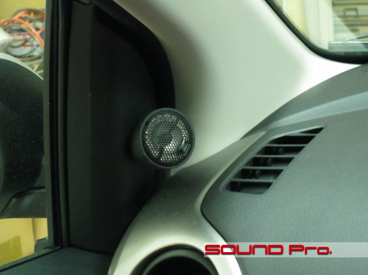 スピーカーとツイーター間に介在するネットワークは、サイドインパクトシールド用の発泡ウレタンを外した位置に取り付けています。