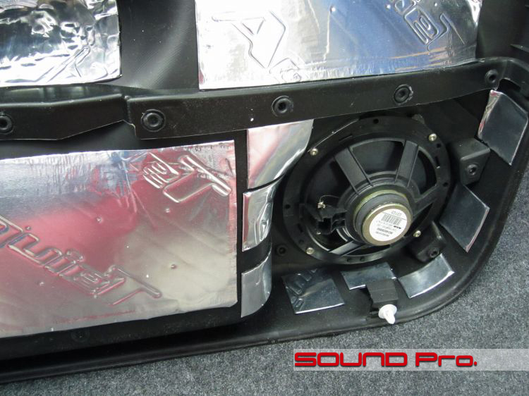 スピーカーボックスを構成する壁となっていただくために、きっちりと防振材を施工し、ビビる場所を改善しておきます。