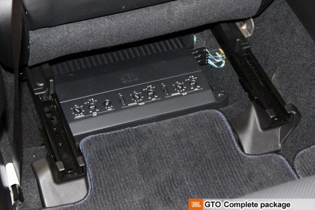 パワーアンプJBL 5EZは助手席のシート下に納めました。