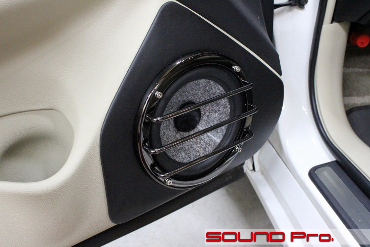 スピーカーグリルはキット付属ではなく、GROUNDZEROのサブウーハー用です。1個1万円もするのですが、金属製で頑丈なので良いですね。