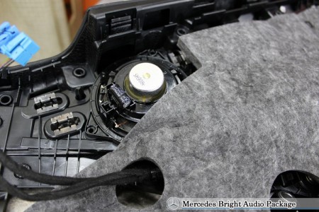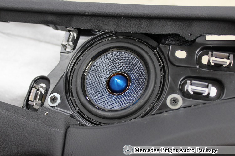また、プロショップの立場から言わせていただくと、8センチのユニットがドアの内装に付いているので、(足場のしっかりしたドアの鉄板に付いている)一般のクルマに比べて稼働条件が悪く、一定の防振のノウハウも必要だろうということで、これらをワンストップで解決するプランとして、メルセデス・ブライトオーディオパッケージを企画することとしました。