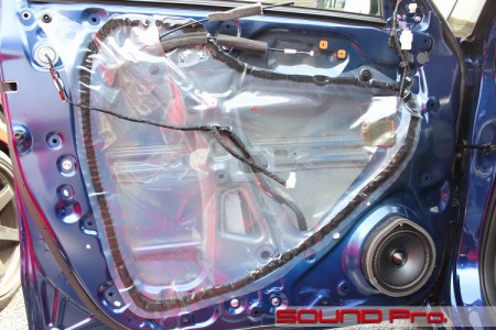 試聴させていただくと、スピーカーがキチンと鳴りきっていない感じがしましたので、(圧倒的勝利を確信しつつ!)ドア防振による環境整備を提案しました。