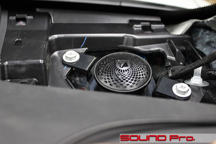 純正のツイーターを外し、当店のオリジナルブラケットを使ってHELIXS62Cのツイーターを取り付けました。