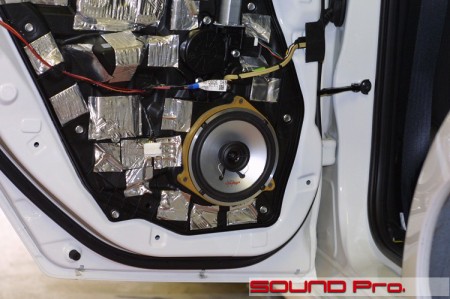 MACROMの16センチセパレートユニット、M2S-61をアップタイト加工を施したオリジナルベースに取り付け、デッドニングも併せて施工しました。