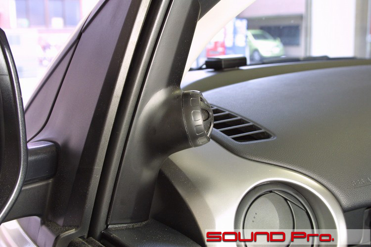 パナのナビヘッドを中心に、4スピーカーをマクロムに入れ替え、サブウーファーまで備えた贅沢仕様のデミオです。