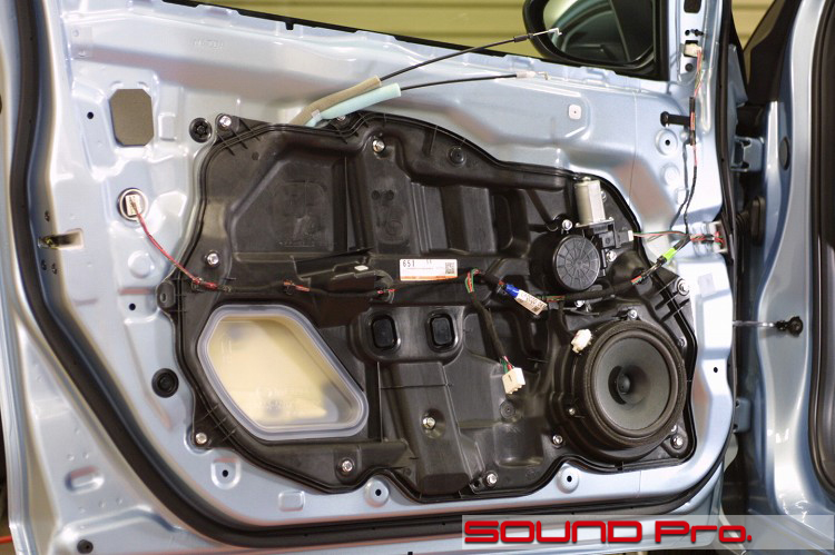 UP TIGHT仕様のスピーカーベース制作とスピーカー取り付け、ドアチューニング、ツイーターの加工取り付けと言う作業です。