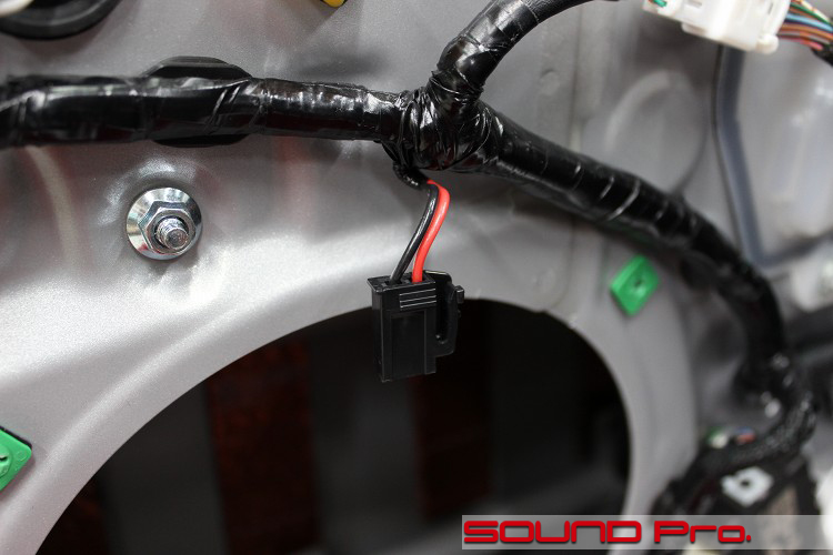 スピーカーケーブルは、末端のカプラを含めて純正ケーブルを使いました。カプラと社外スピーカーとの接続には、お店で制作した変換ケーブル(カプラ⇔平型端子)を使っていますので、純正ケーブルへの負担はなく、純正戻しも容易です。