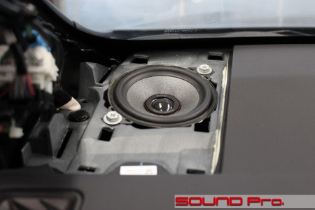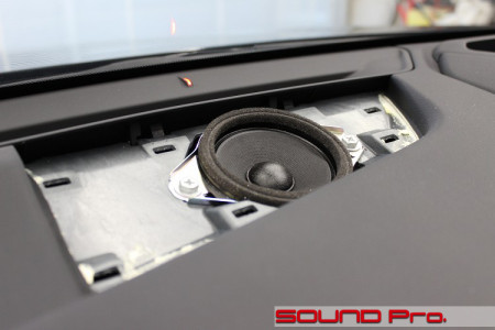 ハイレンジスピーカー/センタースピーカーについては、ダッシュボード上のグリル内で差し替えを行い、フロント5スピーカーの全てについて、純正の外観に一切の変更を加えることなくインストールしました。