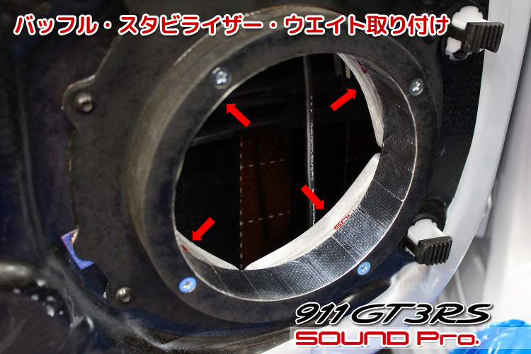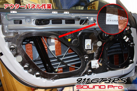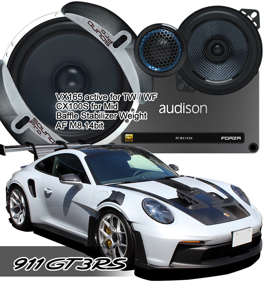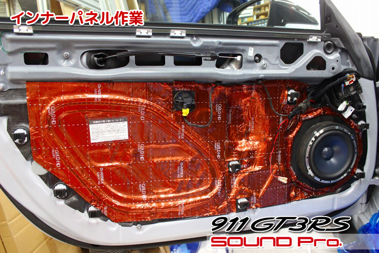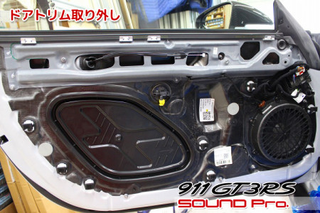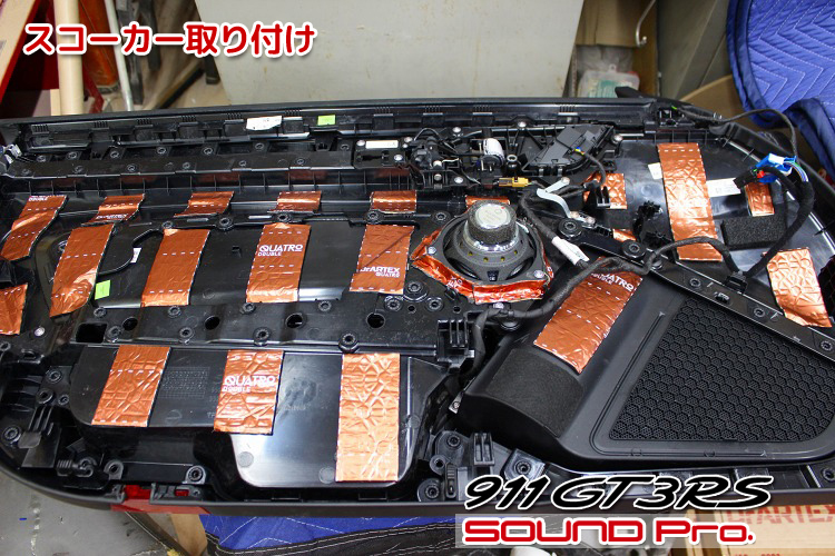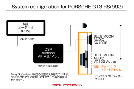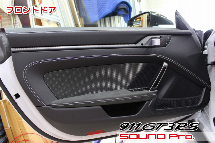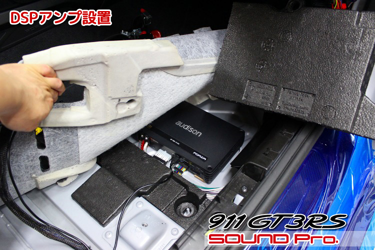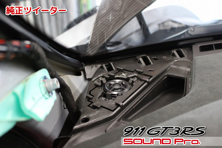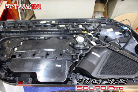 GT3を含む911系のサウンドアップメニューの定番は「フロント3way交換+DSPアンプ投入」で、お好みでパワードサブウーファというところですが、今回は以下の点が特徴的でした。