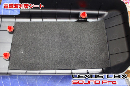 助手席のパッセンジャーに影響がない程度の製品なのでしょうけども、デリケートなオーディオ系電気製品であるDSPには気を遣った方がよいだろうとの判断から、樹脂カバーの裏に、音響用電磁波吸収シートのRAM-25を貼っておきました。