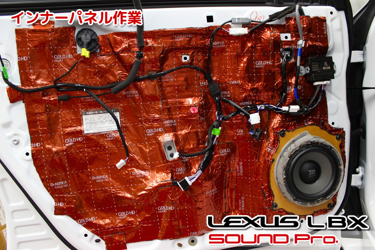 これまでに蓄積させていただいたレクサス向け施工経験をもとに、共通項と個別の課題を見出して、レクサス車向けのオーディオ改善プランとして構築した自慢のプログラムで、今回のLBXにも適用可能です。