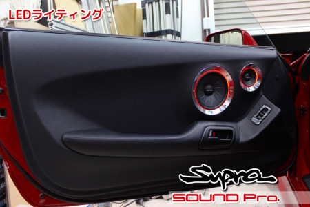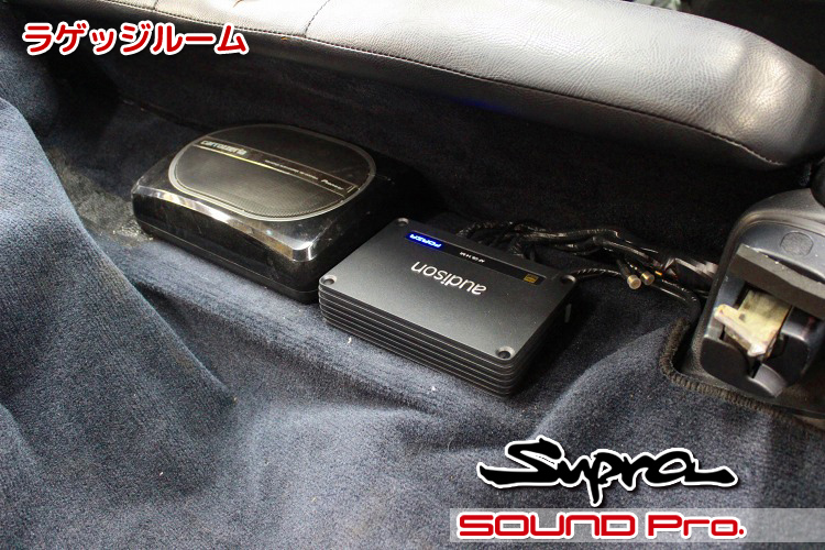 この型のスープラに関しては、リヤの大きなラゲッジルームがインストールスペースとして使えますので、サブウーファー、アンプといった大型アイテムを自由にレイアウトでき、LEDを入れれば、リヤウインドウ一杯に広がる光がエモさ満点!魅せるインストールの頂点と呼ぶにふさわしい世界が楽しめます。