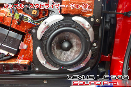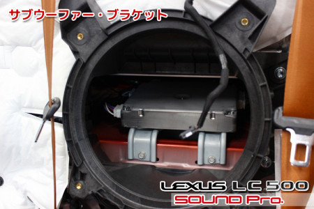 スピーカー(ウーファー)の設置方法は標準オーディオ(レクサスLCプレミアムサウンドシステム)とマークレビンソンではことなっており、標準が樹脂製のエンクロージャーにスピーカーが取り付けられているのに対して、マークレビンソンでは、一般的な車のように、ドアのインナーパネルに設けられたスピーカーホールにバッフルを介してスピーカーが取り付けられるパターンです。