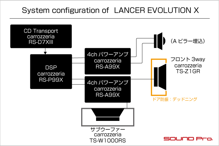 三菱 ランサーエボリューション Xのオーディオインストール事例