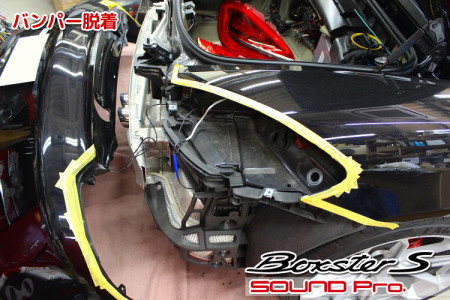 バックカメラの取付のためにリヤバンパーを外したところです。