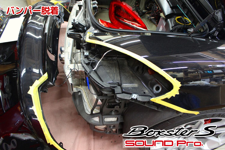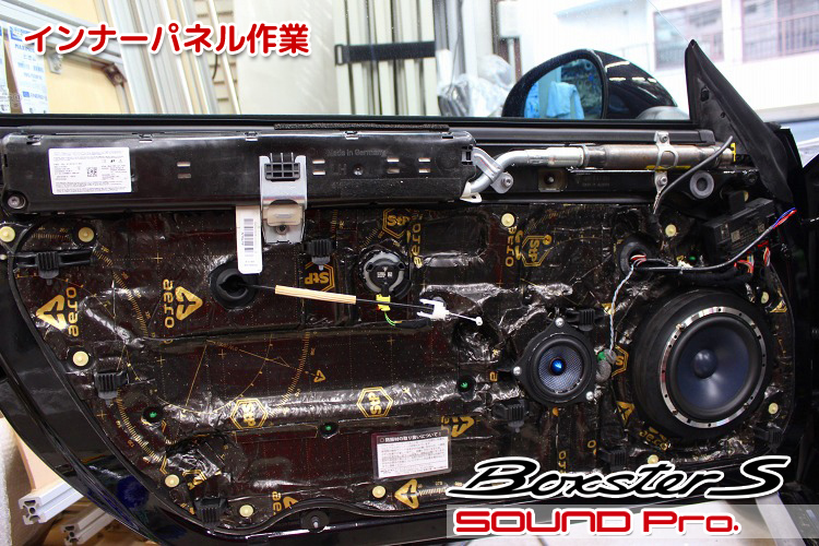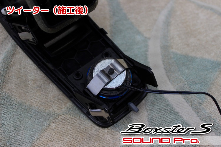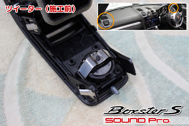 このボクスターはドアにウーファーとスコーカー、ツイーターはダッシュ配置の3way構成になっています。