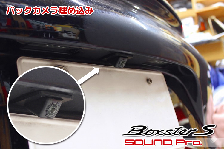 取り付けは、当店オリジナルのカメラブラケットを使って、ナンバー灯付近に埋め込みました。