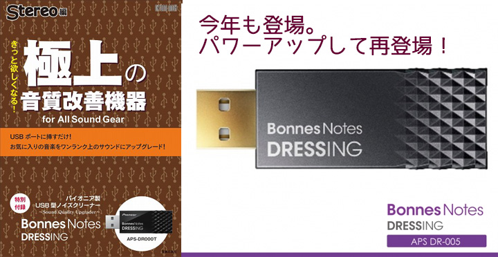 当サイトにおいでのお客さまなら説明不要のパイオニア製USBノイズフィルター「Bonnes Notes DRESSING」です。
