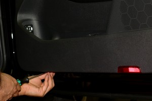 内装を戻す際は、ミッドレンジより出ている配線をツイーターとウーハーの配線をしてから、集中カプラーを戻し、ネジ類は外す作業と逆の手順で元に戻します。(窓を開けてから内装を戻すと上部のレールへの差込作業が容易です。)